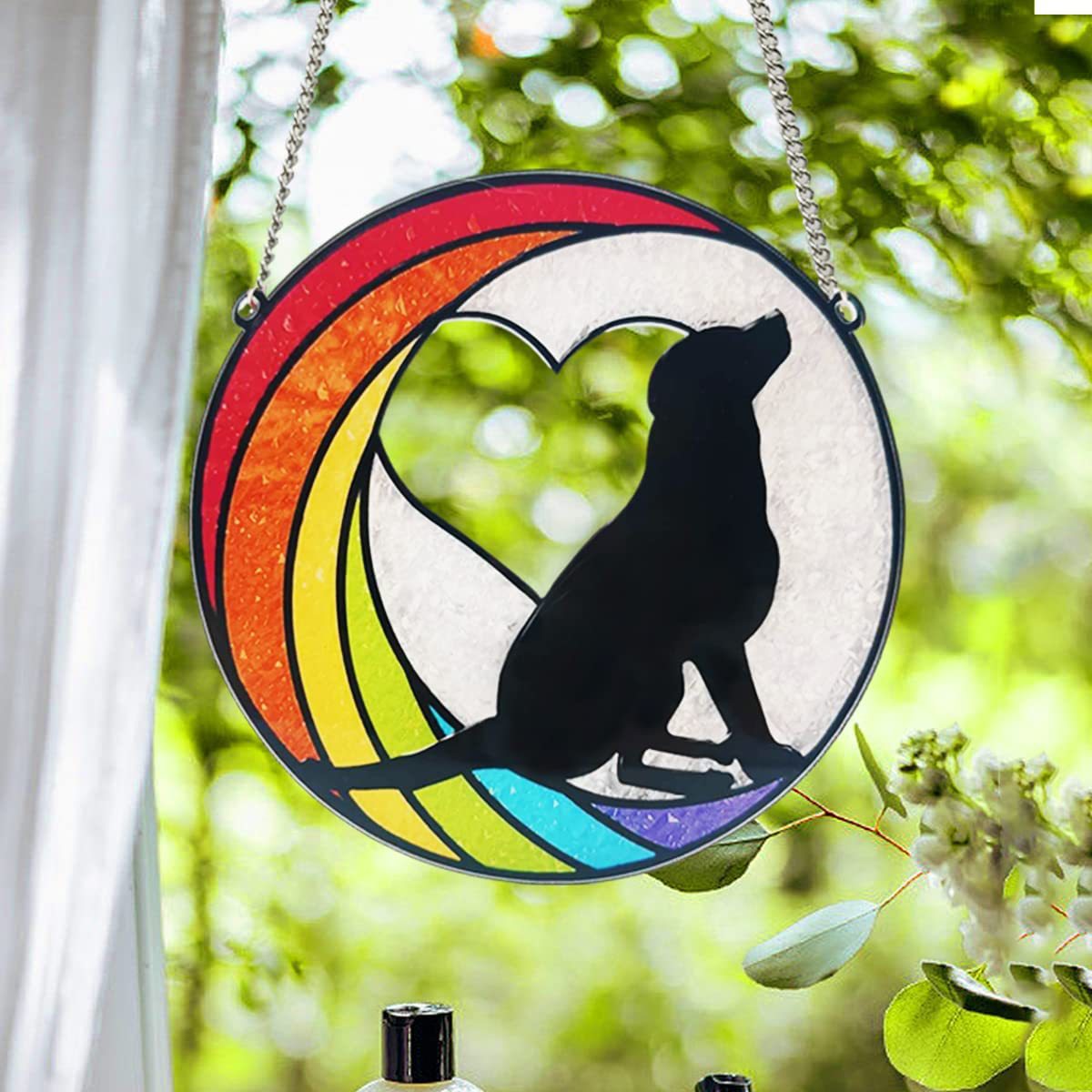 Rainbow Heart Dog Suncatcher